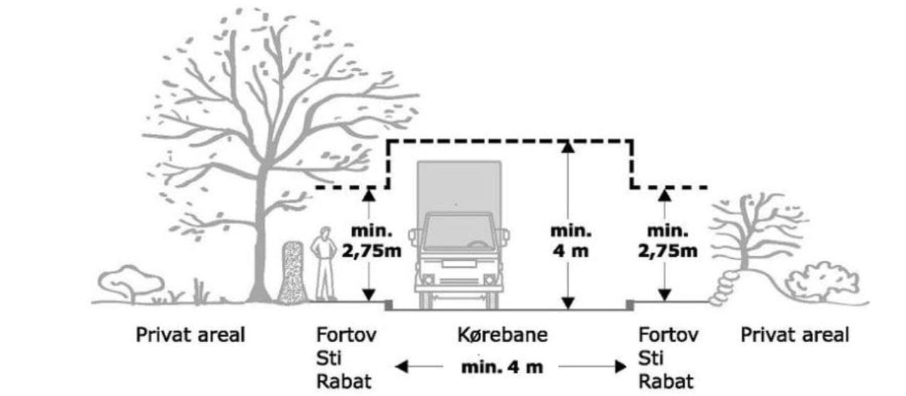 - Beplantning langs adgangsvejen skal være beskåret, således at til- og frakørsel kan ske uhindret.