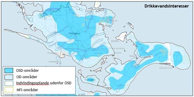 | Drikkevand | BNBO og 300 m bufferzone | Indvindingsoplande | OSD | OD |