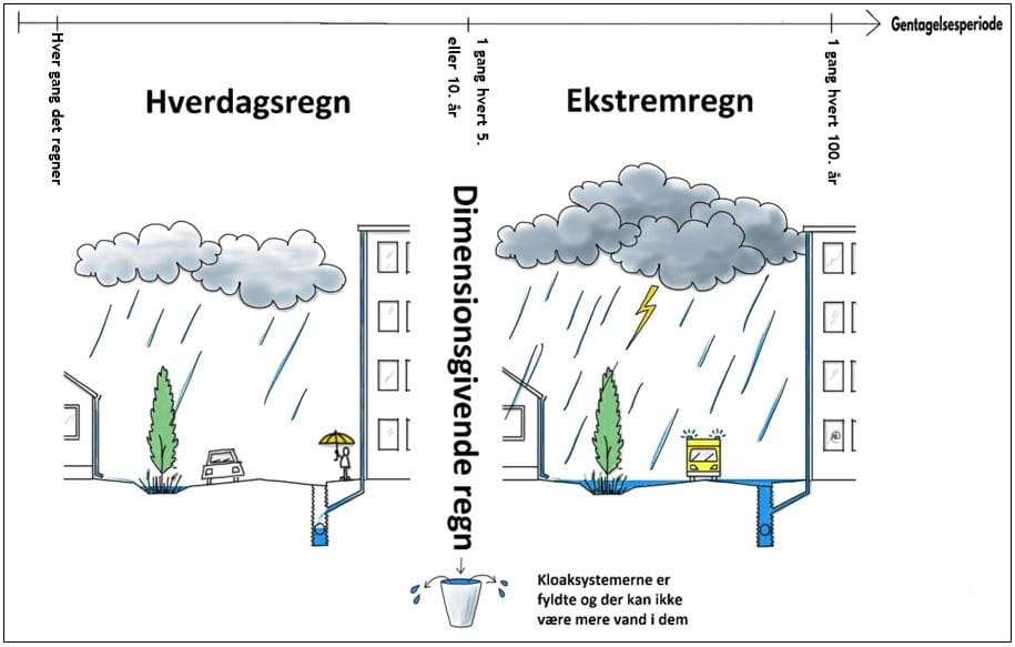 Det er således ikke muligt at undgå opstuvninger og oversvømmelser i forbindelse med alle regnhændelser, men omfanget kan nedbringes til et niveau, der kan accepteres.