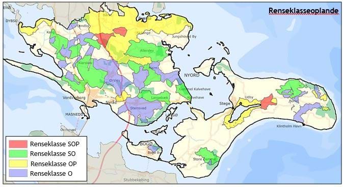 I nedenstående er vist de udpegede renseklasseoplande i Vordingborg Kommune.