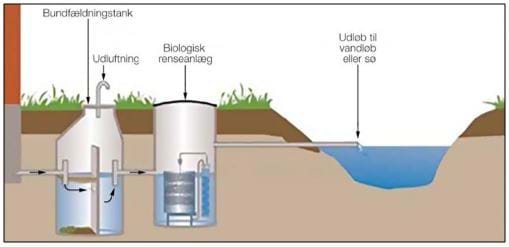 Efter bundfældning sker der en biologisk rensning af det organiske materiale og evt. en fosforfjernelse ved kemisk fældning.